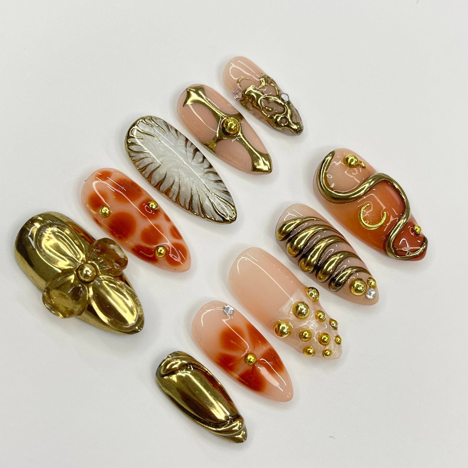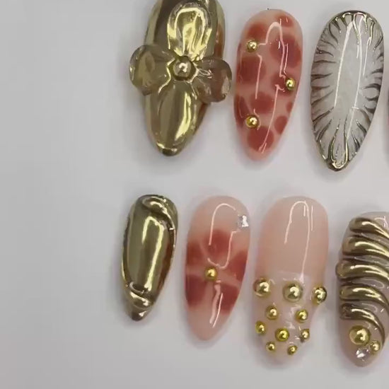 Discover stunning 3D Flower with Gold Press on Nails, blending elegant floral designs with luxurious gold accents. Perfect for any occasion, these nails offer easy application and long-lasting glamour