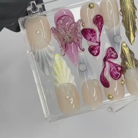 Bloom in 3D with our Flower Press on Nails! Vibrant, sculpted floral designs pop in summer hues. Handcrafted for easy wear, these nails add bold, dimensional charm to your sunny style.