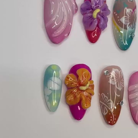 Colorful 3D Flower Summer Press on nails