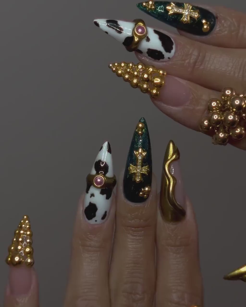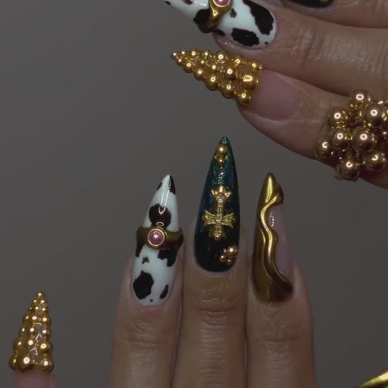 Dare to be different with Cow Gothic Handmade Press on Nails — a bold mashup of edgy gothic vibes and playful cow print, perfect for turning your nails into a rebellious fashion statement.
