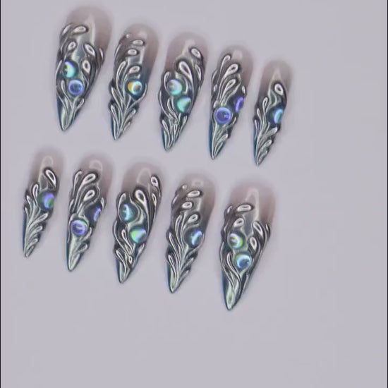 Unleash your bold side with Freestyle 3D Chrome Gothic Press on Nails, featuring dark, shimmering chrome and intricate 3D gothic designs. Durable, reusable, and easy to apply, these nails deliver a striking, edgy vibe.
