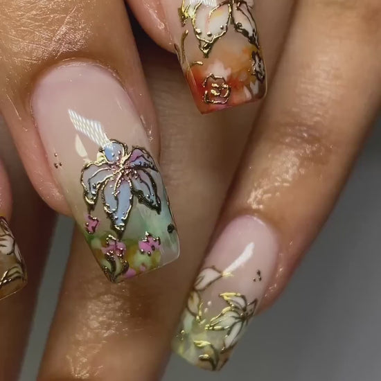 Gold Foil Floral Handmade Press on nails