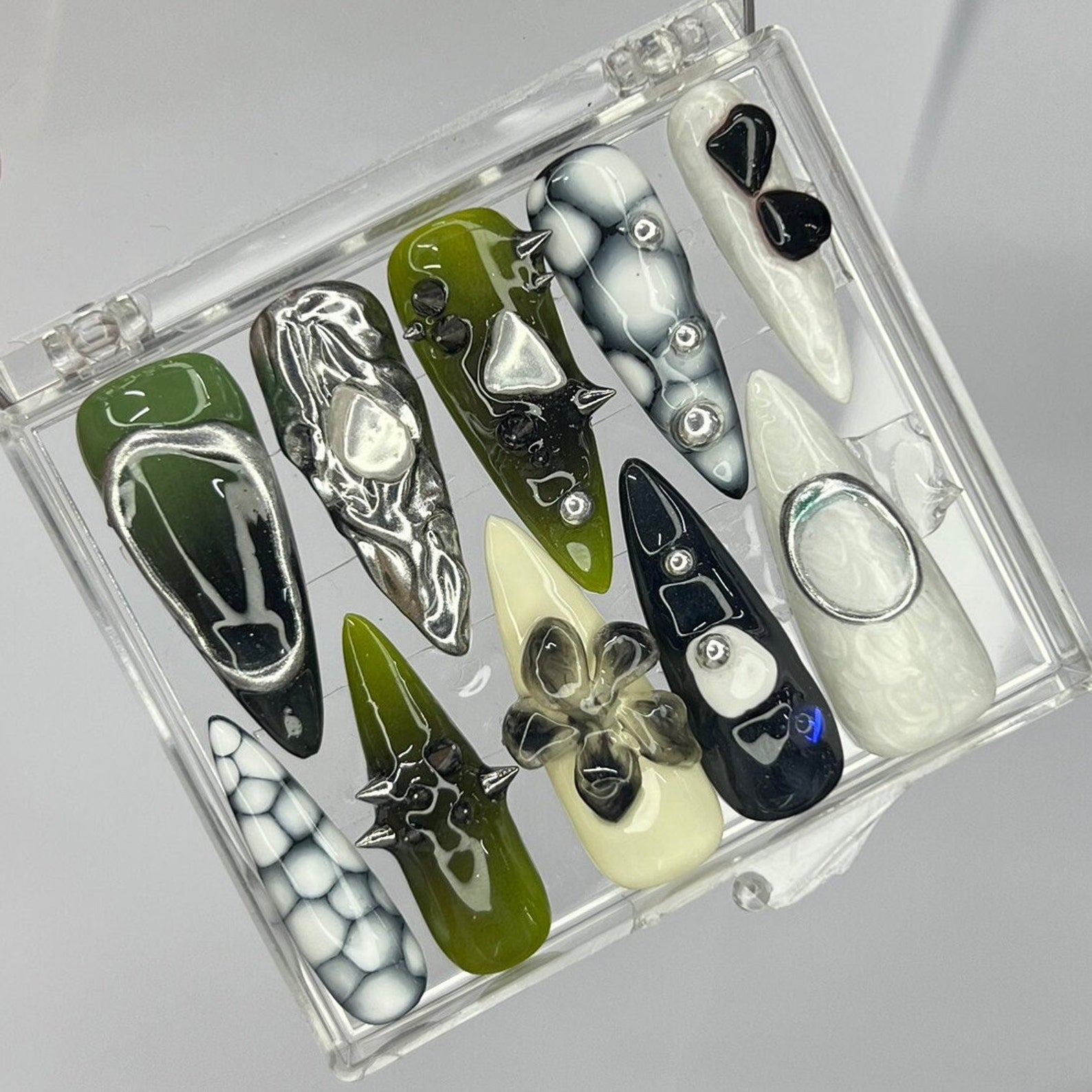 These nails are beautiful, love the detailing of each one, I will order again, love the colors.