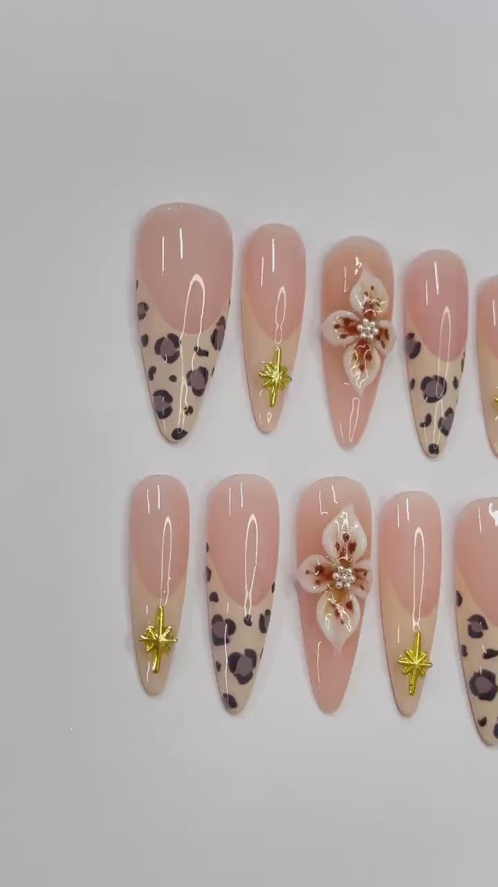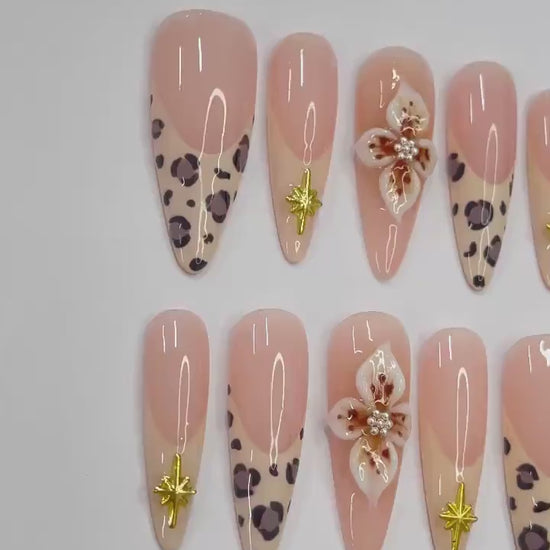 Unleash your wild elegance with Leopard Flower Press on Nails! Bold leopard print meets vibrant floral designs. Easy to apply, durable, salon-quality for a fierce, chic look that roars with style.