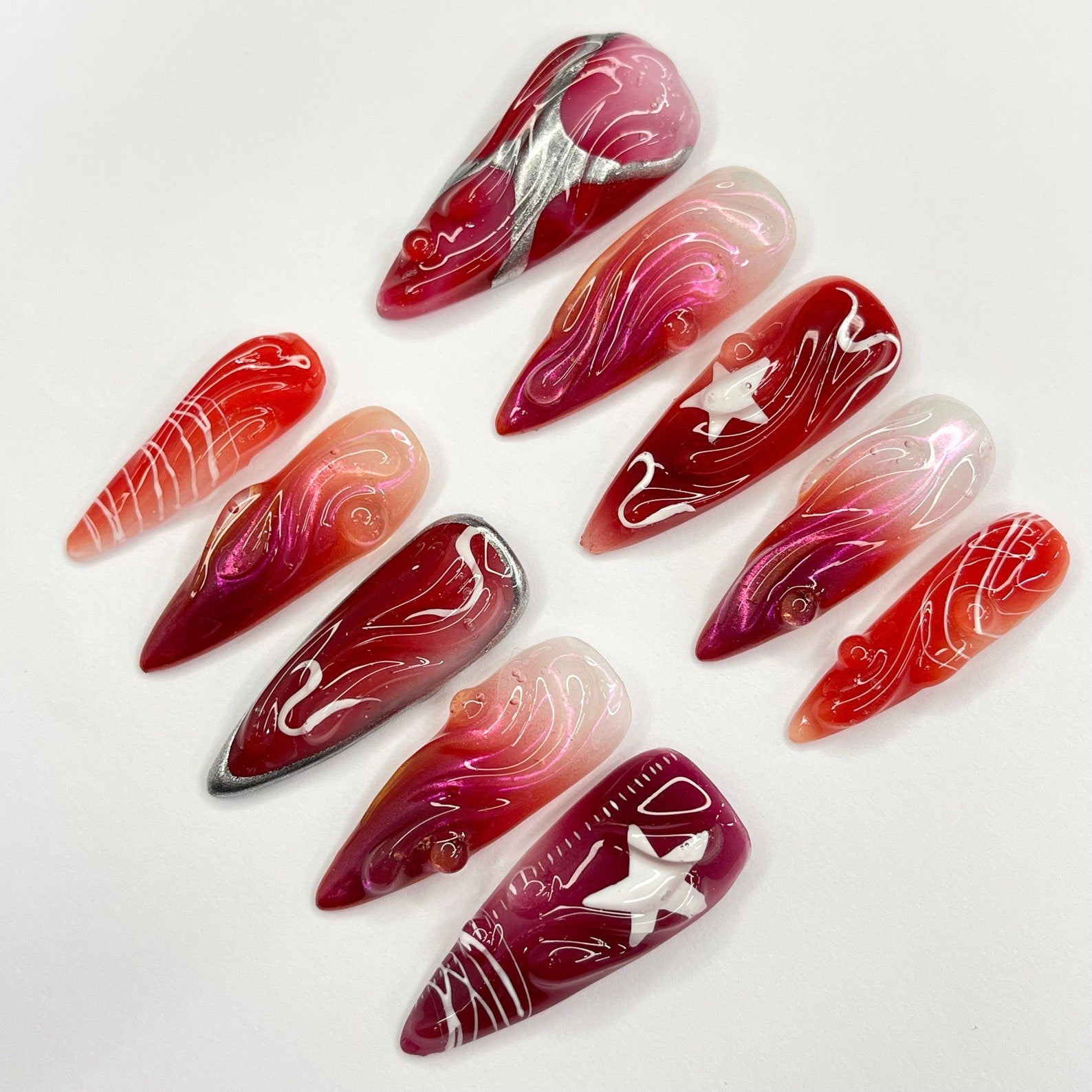 Red Silver Star Press on nails