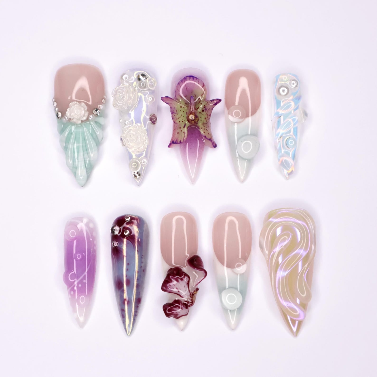 These nails are beautiful, love the detailing of each one, I will order again, love the colors.