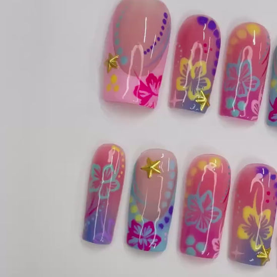 Escape to paradise with Tropical Handmade Press on Nails, bursting with vibrant jungle hues and exotic floral designs. Crafted for durability, these reusable nails offer a salon-quality, tropical vibe in minutes.
