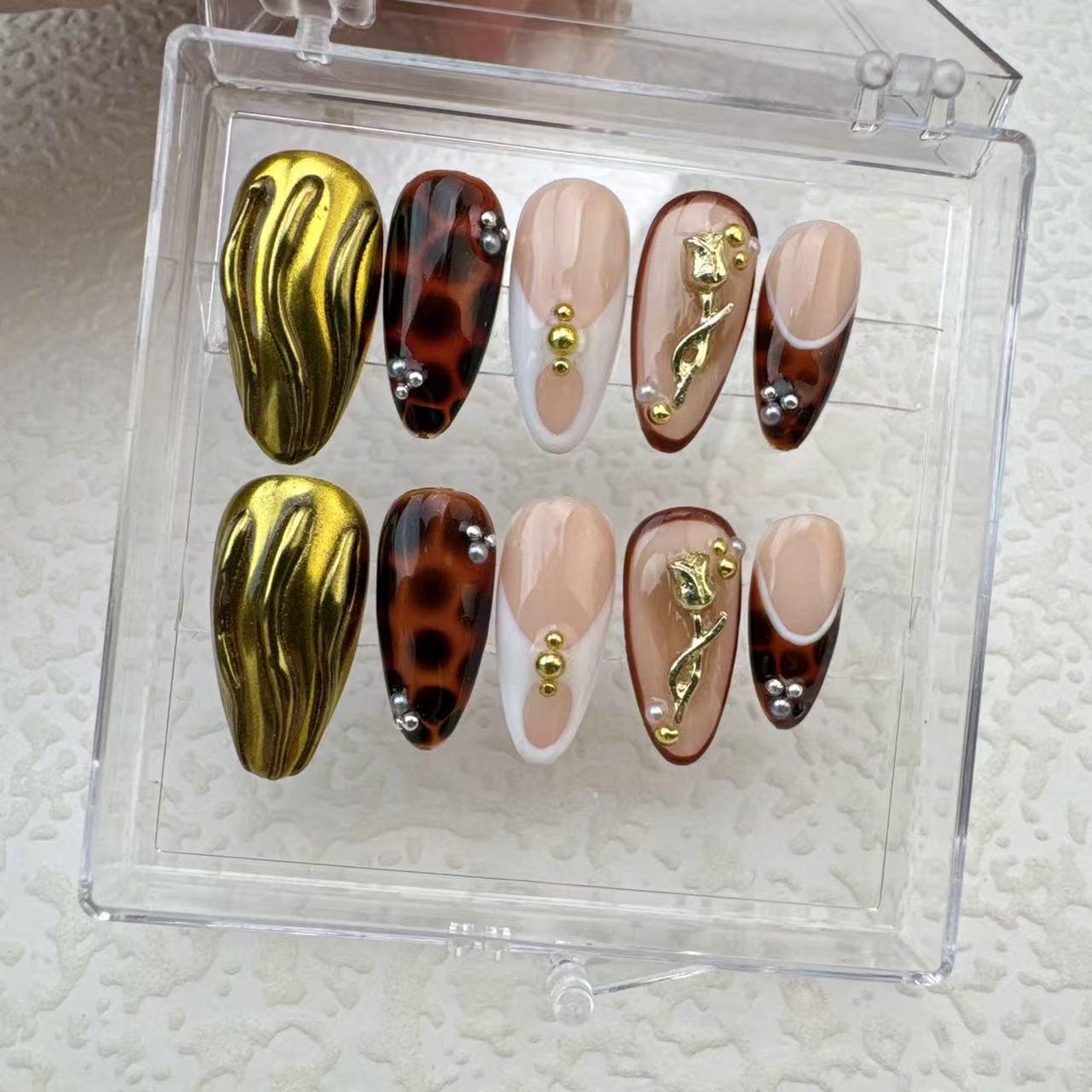 These nails are beautiful, love the detailing of each one, I will order again, love the colors.